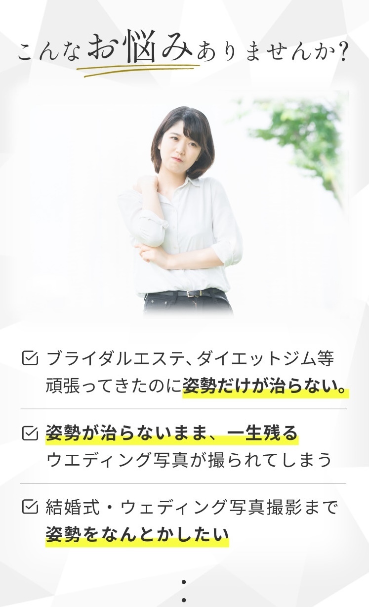 結婚式に向けて、全身を引き締めたい!姿勢を治したい!